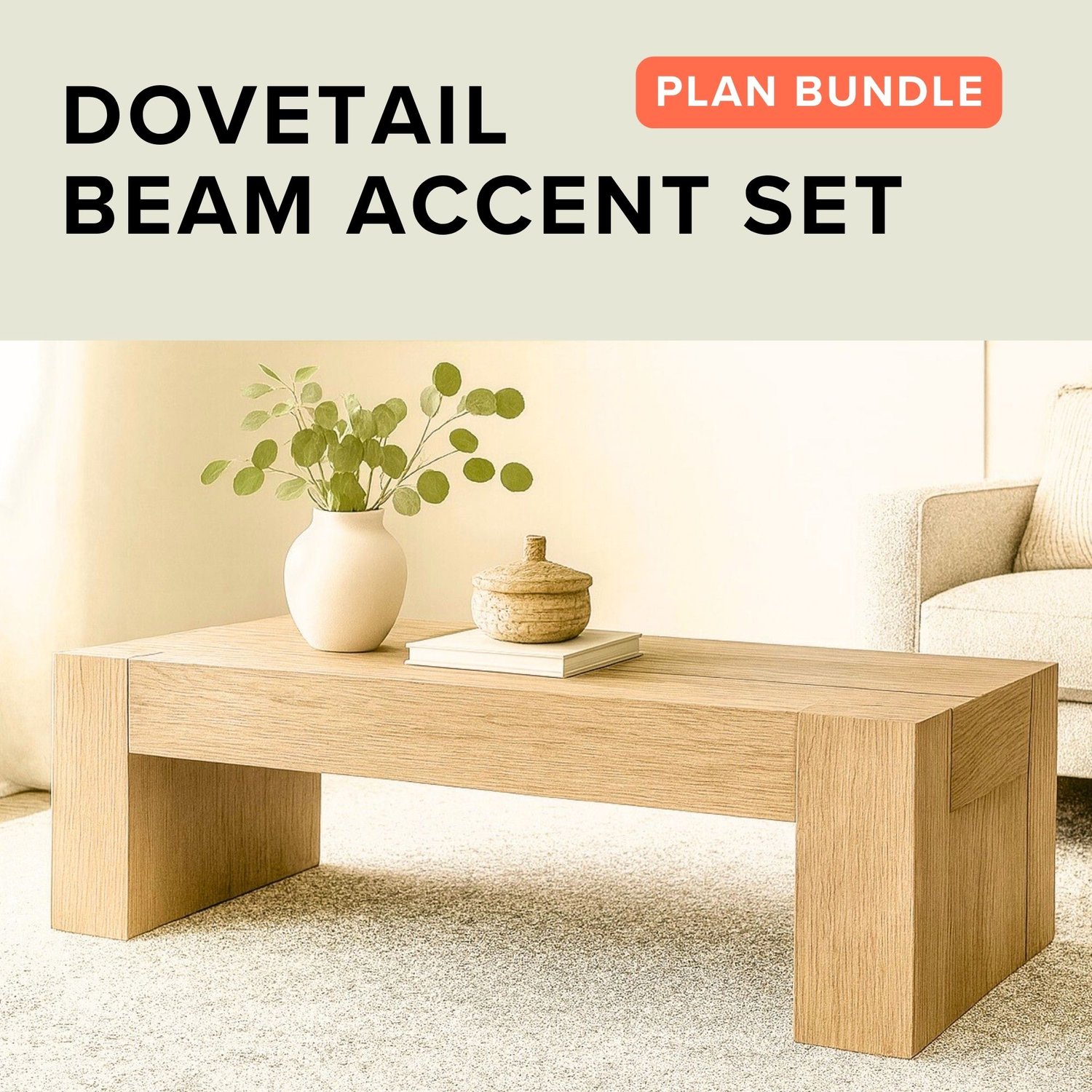 Inspired by designer collections that retail for over $6000, this three-piece beam-style table set (console, coffee, and two end tables) features stunning dovetail-style detailing and bold, minimalist lines. The best part? These tables are deceptively simple to build and surprisingly lightweight—no complicated tools or techniques needed.