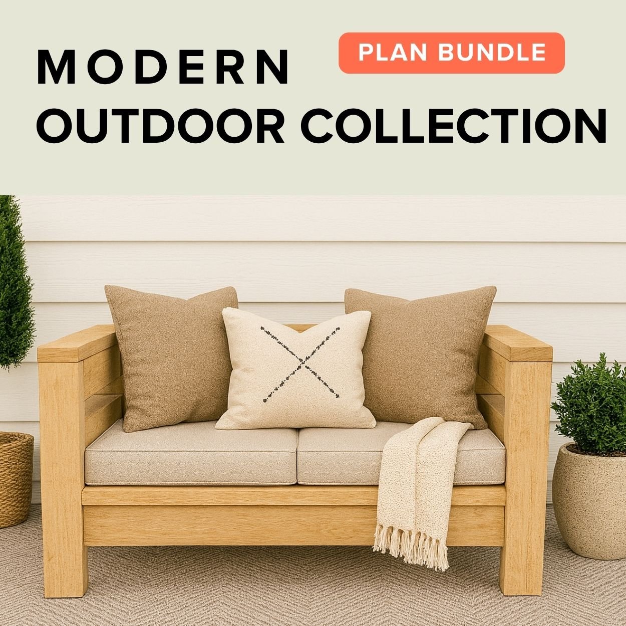 Build your dream outdoor space with this premium collection of matching modern outdoor seating plans. This downloadable bundle includes step-by-step plans for the Chair, Loveseat, and our brand new Sofa design – only available in this exclusive collection!